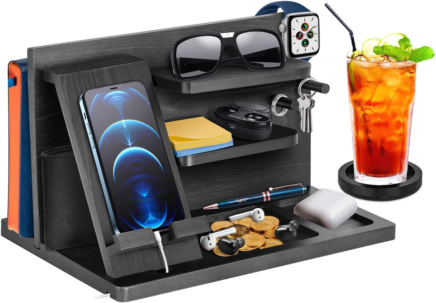 Image suggestion: A clean nightstand with a small organiser holding everyday essentials.